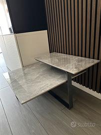 Tavolino moderno di marmo molto elegante che prende forma su 2 piani di altezze diverse. Praticamente nuovo senza nessun segno. Contattatemi se interessati, ritiro solo a mano.