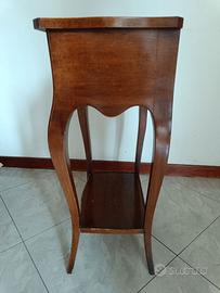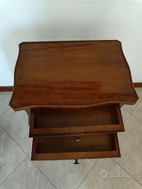 Vendo tavolino mobiletto d’epoca con doppio piano di appoggio in legno con due cassetti con le seguenti misure: Largh. 41cm. Alt. 70cm. Prof. 29cm. Luogo di ritiro Viareggio (LU). La richiesta è di 160,00 €. Possibilità di spedizione. Pagamento con bonifico bancario o PayPal.