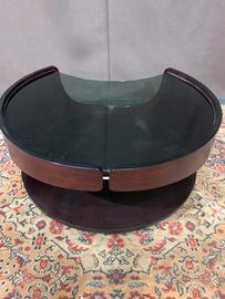 Tavolino da caffè rotondo in legno curvato MID-CENTURY MODERN nello stile di Joe Colombo ha un diametro di 78cm ed è alto 35cm