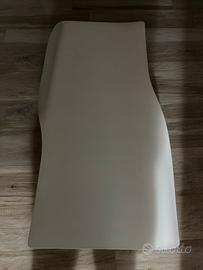 Tavolino di design,bianco con supporto in acciaio
