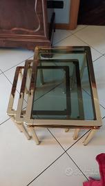 Tavolini da salotto in ottone e vetro , anni 60. Misure 60 per 40, 50 per 40, 40 per 40. Il tavolino piu piccolo non ha vetro. Prezzo da concordare.