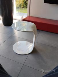 tavolino Yo-Yo del progettista Jakob Wagner, prodotto da Moroso, Italia, 2004, policarbonato curvo bianco lucido, design sottile e semplice, moderno, ...