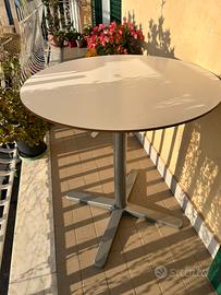 Vendo tavolino con base in metallo con piano in legno, tondo. Diametro 70cm, altezza 72cm