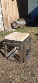 Chiamato cubo impossibile tavolino per il vostro salotto/sgabello /oggetto di design per la vostra casa o ufficio in acciao inox satinato con saldature a scomparsa. piano sopra in legno di cedro...una vera propria bellezza adatto anche per regali di natale...