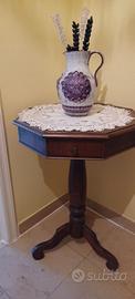 Tavolino ottagonale antico tripode con lievi decori sul piano superiore e con un cassettino. Mobile che arreda ovunque in ottimo stato, forma otto lati non comune, misure in foto. Prezzo 150 euro. Non spedisco qui ogni accordo di consegna no cellulare.