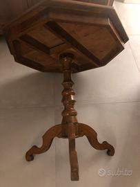 Antico tavolino neoclassico ottagonale, autentico del XIX secolo, con un diametro di 76 cm.