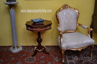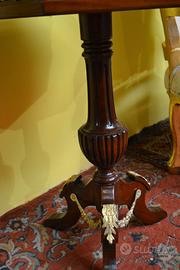 Tavolino ottagonale in stile Napoleone III in noce, bois de rose , radica di noce ed ebano a motivi di intarsio floreale, gamba centrale sagomata e scanalata su una base quadripode.