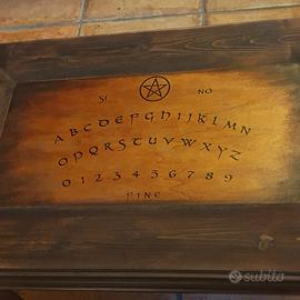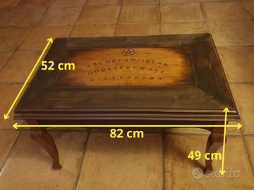 Tavolino da caffè con serigrafia ouija, pezzo unico.