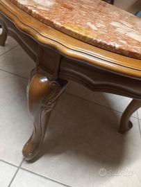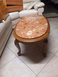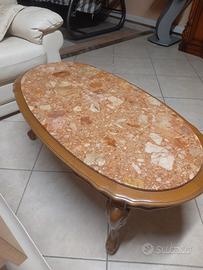 tavolino ovale, con piano in marmo pregiato e base in legno, misure 115x60