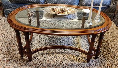 Tavolino ovale in cristallo e legno pregiato privo di difetti Misure L115 P73 H44