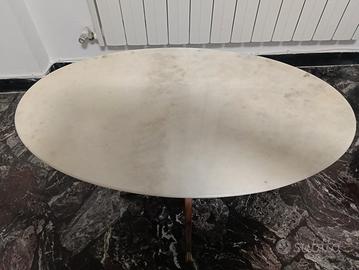 tavolino ovale in vero marmo e legno con piedini in ottone piano in marmo venato e una solida struttura a tripode in legno scuro. Il pezzo è impreziosito da dettagli curati, come la colonna centrale lavorata e i terminali dei piedini in ottone dorato, che donano un tocco di luce e stabilità. Dimensioni: Piano: 72 \times 42 cm (Ovale) Altezza: 48 cm Stato: Il tavolino è in ottime condizioni generali. Il piano in marmo è integro, senza crepe o macchie evidenti. La struttura in legno è stabile e solida. Perfetto per un ingresso, come piano d'appoggio accanto a un divano o in uno studio professionale. Altre informazioni: Prezzo: € 100 (leggermente trattabile) Ritiro a mano a Genova Nota: Il piano in marmo è pesante, consiglio il ritiro in auto.