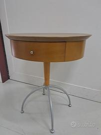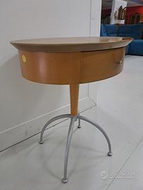 Tavolino ovalino in legno tinta ciliegio, con cassetto, basamento in tinta argento, larg. 60 prof. 50 h. 68