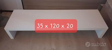 Vendo panchetta TV / tavolino porta oggetti. Dimensioni: 120(L)x 35(P)x 20(H)cm (vedi foto) Colore: bianco Utilizzo: porta TV 55 max pollici, fiori, libri. RITIRO MERCE (basta un'automobile): - da ritirare con mezzi propri - accesso da piano terra