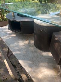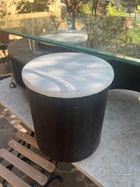 Tavolino vintage piu due puf piano in vetro.cm 30x70x43. Puf misure: altezza 35 diametro 30