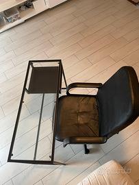Scrivania con con struttura in ferro e pianale in vetro conpreso di sedia ufficio..ritiro a mano