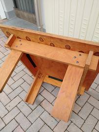 Tavolino-pedana da lavoro-rialzo, robustissimo, in compensato di pino con incollaggio fenolico con spessore di 22mm, dimensioni cm 91,5x75x42,5h.