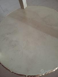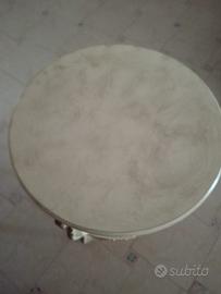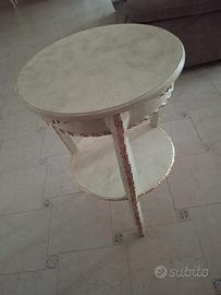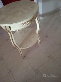 Elegante tavolino rotondo in stile shabby/classico, color avorio con dettagli dorati antichizzati. Le gambe sinuose e gli intagli decorativi richiamano un gusto vintage, ideale come tavolino da salotto o da ingresso. Prezzo trattabile