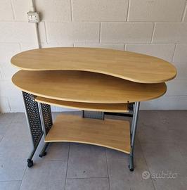 Scrivania per Computer Porta PC Classico e Salvaspazio, Scrivania per cameretta con Piano Tastiera a Scomparsa, 4 Ruote e Ripiano Inferiore.