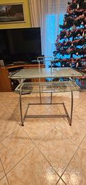 Tavolino per pc con ripiano a scomparsa per tastiera in vetro