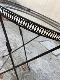 Chicca da salotto, caffè e biscotti, un po’ brioso un po’ elegance, molto garçonnière. Bello. Dimensioni altezza cm 67 – diametro 50 Materiali ferro