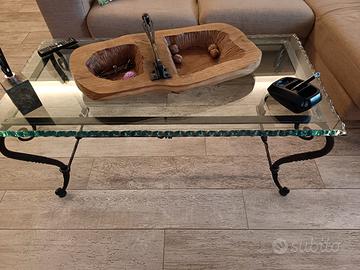 Tavolino da divano o come lo si vuole collocare completamente in ferro battuto fatto un noto fabbro di grande fama con vetro intagliato a mano