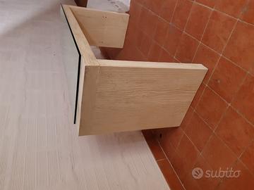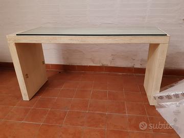 Vendo tavolino in legno, di colore beige, con ripiano in vetro. Nuovo. Mai usato.