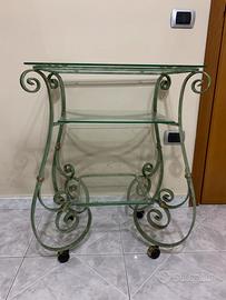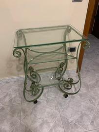 Tavolino per tv in ferro battuto con tre piani in vetro misura 59x42 h74