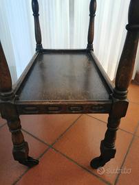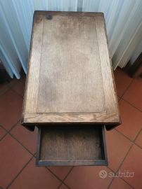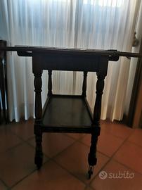 tavolino pieghevole con ruote, in legno, con cassetti e ripiano. Dimensioni chiuso 39x67 cm, aperto 67x79 cm altezza 75 cm. Ottime condizioni, solo un po' da riverniciare il piano