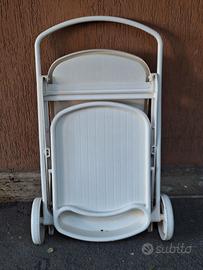 Tavolino in plastica pieghevole colore bianco, con ruote e due ripiani