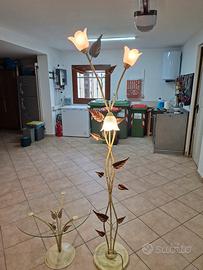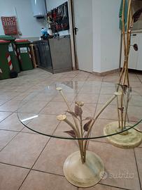 tavolino ferrobattuto con vetro più portalampada funzionante