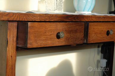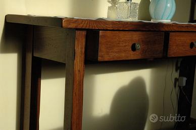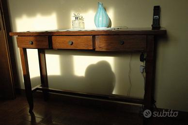 tavolino porta telefono / divisorio con 3 cassetti in legno antichizzato; l.130 x h. 80 x p.35.