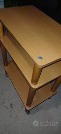 vendesi tavolino porta tv in legno con tre ripiani e ruote; misure L cm. 60 P cm. 35 H cm. 80 pari al nuovo.