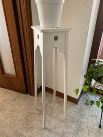 Tavolino porta vaso in legno, colore shabby chic bianco. Misure: L23 - P23 - H93. Possibilità di spedizione a carico di chi compra.