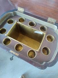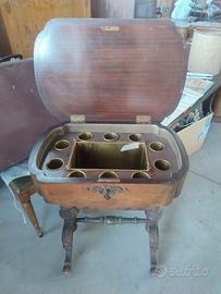 tavolino con ghiacciaia porta bottigle e bicchieri noce fiammata epoca 800 dim 66/45 h74