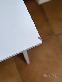 Tavolino ortariviste bianco laccato con scritta Magazzine.
