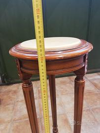 Tavolino portavasi classico in legno. Le gambe fortemente sagomate rendono questo oggetto particolare e prestigioso. Questo tavolino portavasi si presta ad essere utilizzato anche come portalampade, porta statue ed espositore, con piano in marmo rosa e gambe intagliate, prodotto vintage particolare, prezzo comprensivo di spedizione e pagamento in contrassegno al corriere.