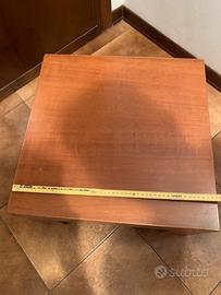 Tavolino stile giapponese basso (altezza da terra cm 28) quadrato (cm 50x 50) ideale anche vome comodino. Color ciliegio. Molto robusto. In buone condizioni. Ha qlc graffio.