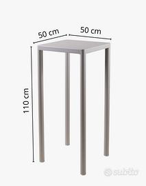 DIMENSIONI OTTIMALI: Tavolino 50x50x110 cm con piano d'appoggio quadrato, sgabelli alti 90 cm con seduta comoda 40x40 cm