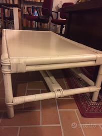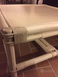 Tavolino quadrato sia da interno che da esterno in midollino laccato bianco