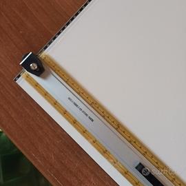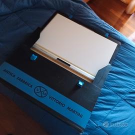 Tavolino reclinabile da appoggiare su scrivania per disegno geometrico con righello mobile . Ottimo stato .Marca antica fabbrica Martini. Compreso di custodia originale