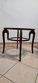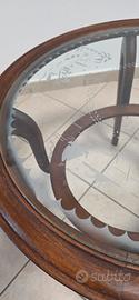 Tavolino basso rotondo attribuito al designer italiano Paolo Buffa, raffinato esempio di arredamento di design italiano del mid-century. Realizzato negli anni ’40–’50, presenta una solida struttura in legno (mogano o faggio ebanizzato) abbinata a un piano tondo in vetro, che ne valorizza le proporzioni armoniose. Le linee sinuose e la lavorazione artigianale riflettono lo stile inconfondibile di Buffa, capace di fondere suggestioni neoclassiche, Art Déco e principi modernisti. Un pezzo vintage di grande eleganza, ideale per collezionisti e per ambienti ricercati.