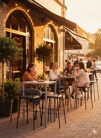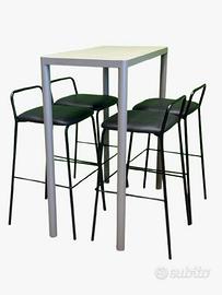 SET MODERNO: Set composto da un tavolino rettangolare in metallo e quattro sgabelli con sedute in eco pelle, perfetto per spazi moderni