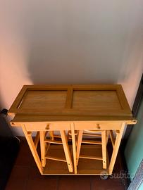 Tavolino in legno con sgabelli Richiudibile Con rotelle Comodo e pratico
