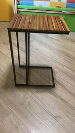 Tavolino stile industrial/minimal con struttura in metallo nero e piano in legno a listelli.