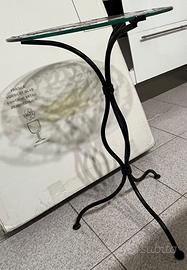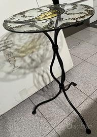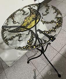 Tavolino rotondo diametro cm40 h60 ferro battuto e vetro con disegno luna