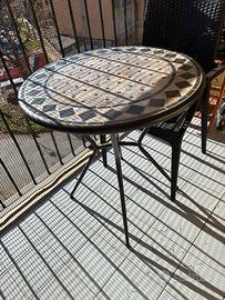 Tavolo rotondo diametro 70 cm.con gambe in acciao nero e piano in piastrelle a mosaico (come da foto allegate) Altezza da terra cm 74. Ritiro a carico acquirente .INFO tel e/o Whatsapp al 3387054753