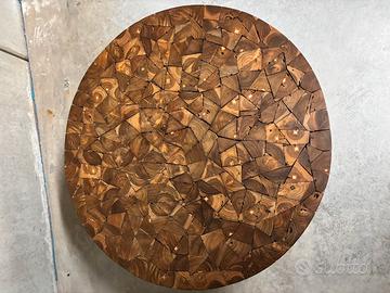 Tavolino rotondo ideale x salotto in legno treak e con struttura in ferro . Misure : diametro cm 80 altezza cm 35 . Ultimo Prezzo