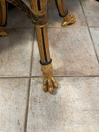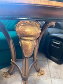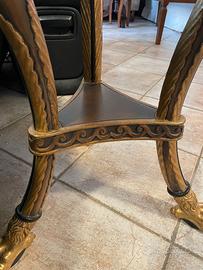 elegante tavolino fortemente ispirato allo stile Impero o al periodo del Consolato francese (fine XVIII - inizio XIX secolo), caratterizzato dall'uso di motivi classici e maestosi. Dimensioni: diametro cm 73 altezza cm 72