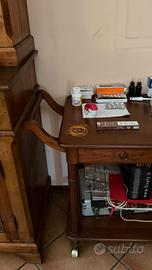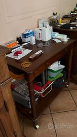 Vendo tavolino rustico in legno massello noce/rovere con due cassetti e ripiano inferiore. Dotato di ruote, comodo da spostare e perfetto come tavolino da ingresso, carrellino oppure mobile da studio. Misure: altezza 74 cm larghezza 100 cm profondità 48 cm Struttura solida e stabile. Disponibile Ritiro a mano.
