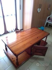 Vendo tavolino rustico da salotto in pino ,molto robusto e resistente, misure 135×70×45.Trasporto a carico dell'acquirente, prezzo trattabile,non spedisco.